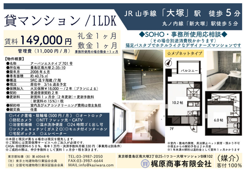 メゾネットタイプ大塚駅徒歩5分2026年4月10日 News Posted by kaziwara2020 内見可能ですのでお気軽にお問い合わせください! 636e58dd4a02298991b0030e7ae04c44ef604ac831072b70abc3be715ef81ca0 コメントをどうぞ コメントをキャンセルメールアドレスが公開されることはありません。 ※ が付いている欄は必須項目ですコメント ※ 名前 ※ メール ※ サイト 次回のコメントで使用するためブラウザーに自分の名前、メールアドレス、サイトを保存する。 Δ